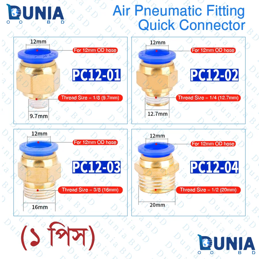 12mm Male Threaded Pneumatic Air Quick Connector Fitting for 1/8-1/4-3/8-1/2 inch PC12-1 PC12-2 PC12-3 PC12-4