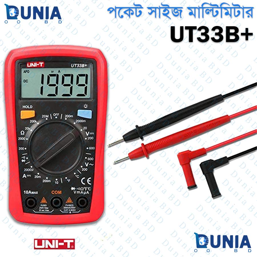 Uni-T UT33B Pocket Size Multimeter, DCAC Voltage 200mV 2V 20V 200V 600V, DC Current, Resistance, Battery Test