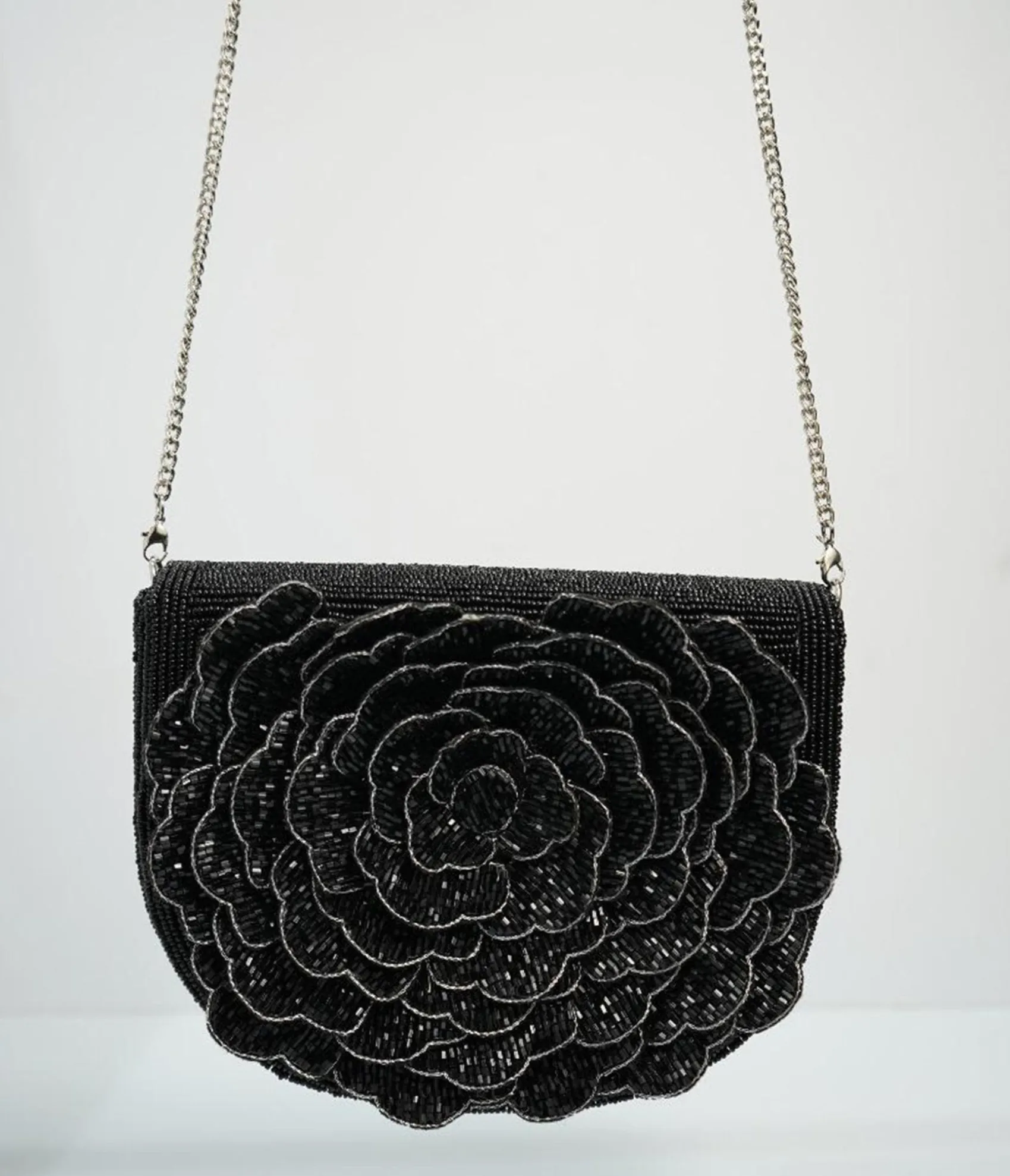 Black Flower Beaded Crossbody Bag