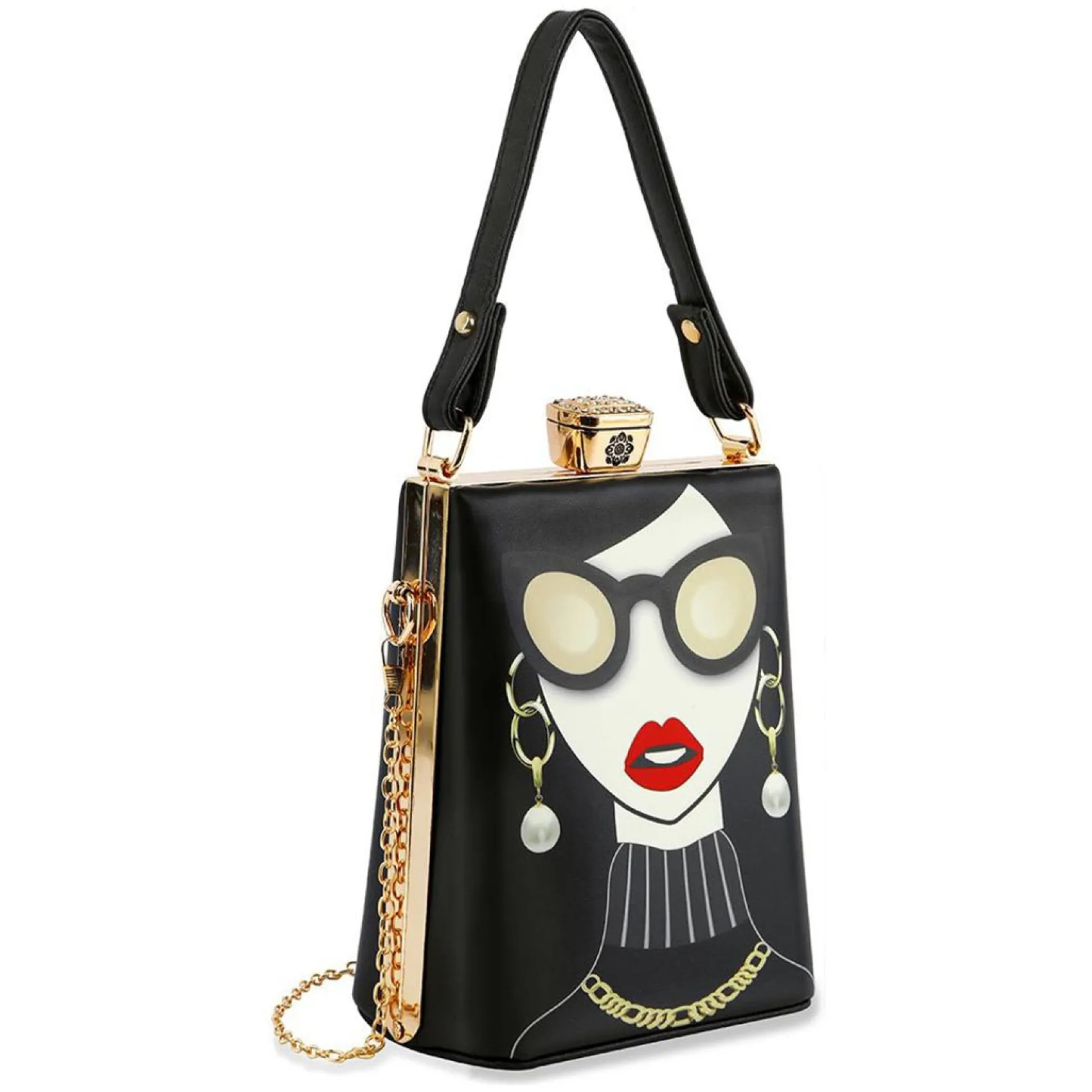 Black Chain & Rhinestone Accented Unique Handbag